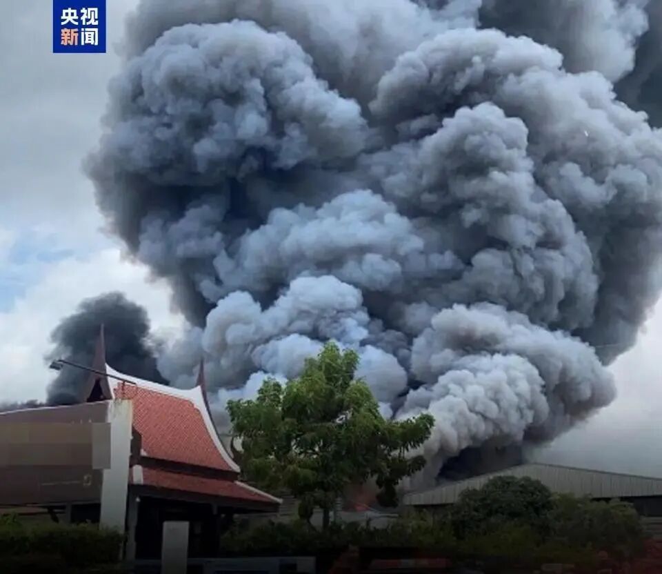 2025年6月,泰国一工业区内的纸厂发生火灾。业内专家认为,“干法纸浆”在生产过程中存在火灾、爆炸等安全隐患。图片来源:央视新闻